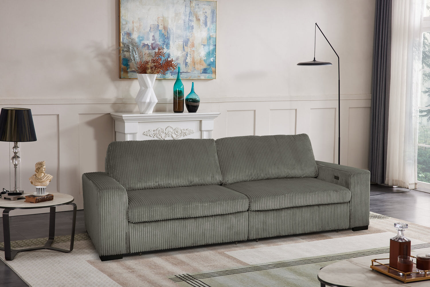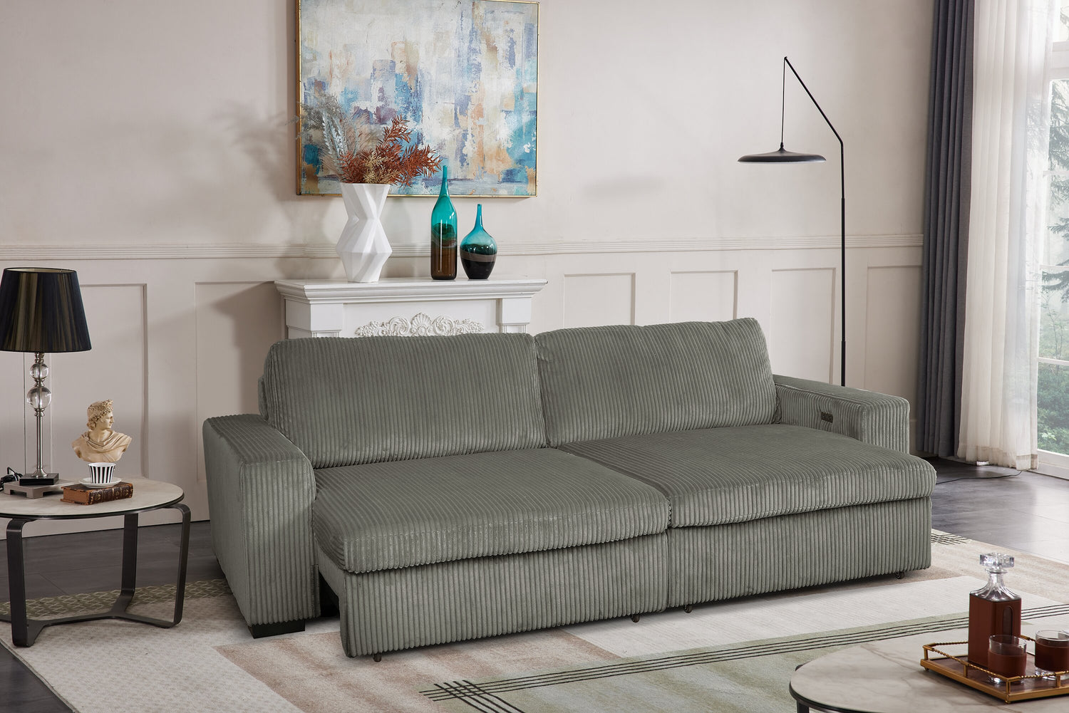 | Caractéristiques des technologies | La fonction de coulissement électrique transforme le sofa en un lit double. |