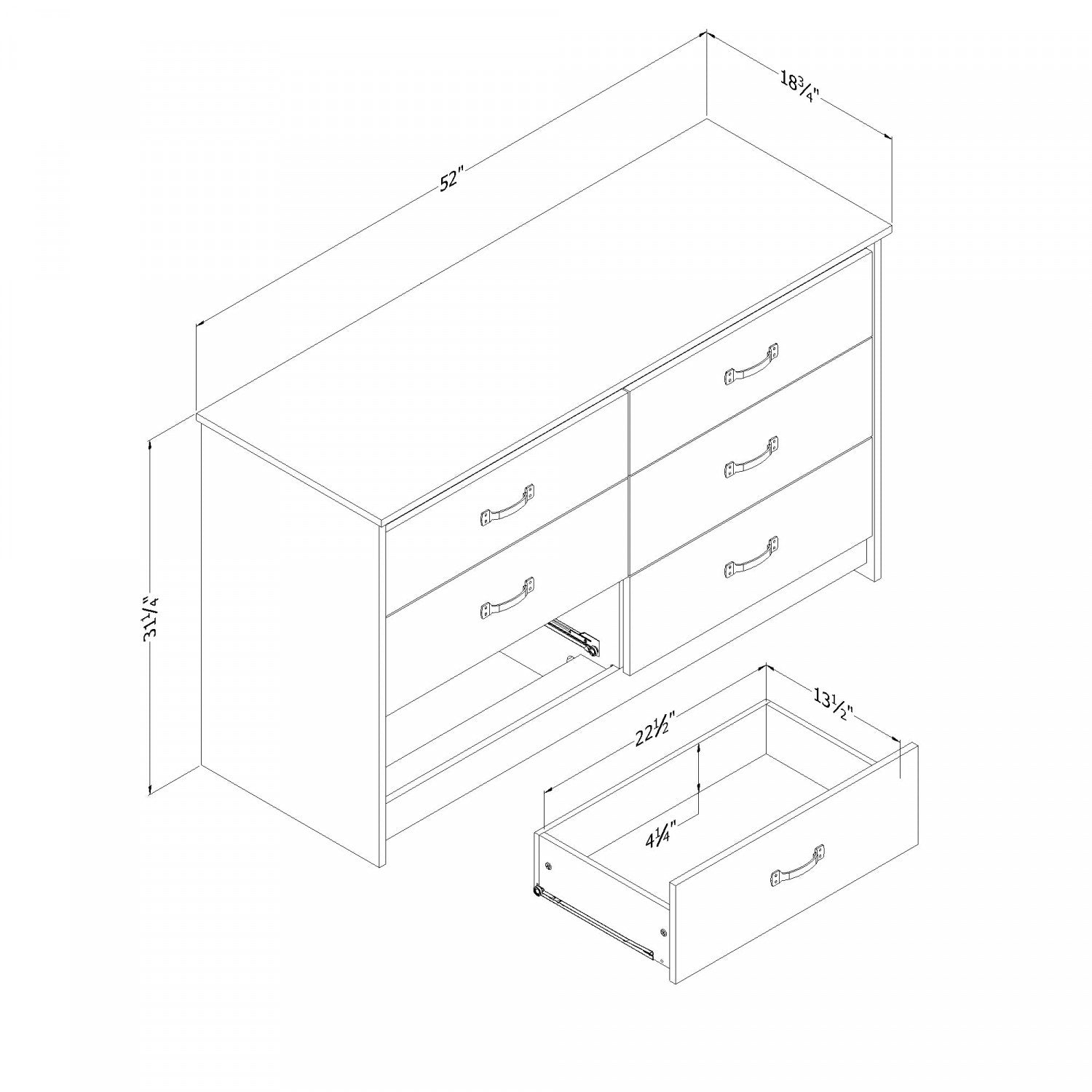 Largeur : 52 po (132,1 cm) Hauteur : 31,25 po (79,4 cm) Profondeur : 18,75 po (47,6 cm)
