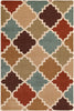 Le motif de quadrilobes de la carpette est composé de teintes de brun et de bleu.