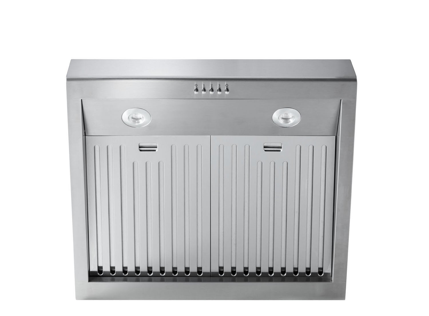 Aspiration puissante : Éclairage à DEL : Fonctionnement silencieux à haute vitesse : Filtre à chicane de style commercial : Commandes à bouton-poussoir : Multiples vitesses de ventilateur : Conduit rond de 7 po : |
