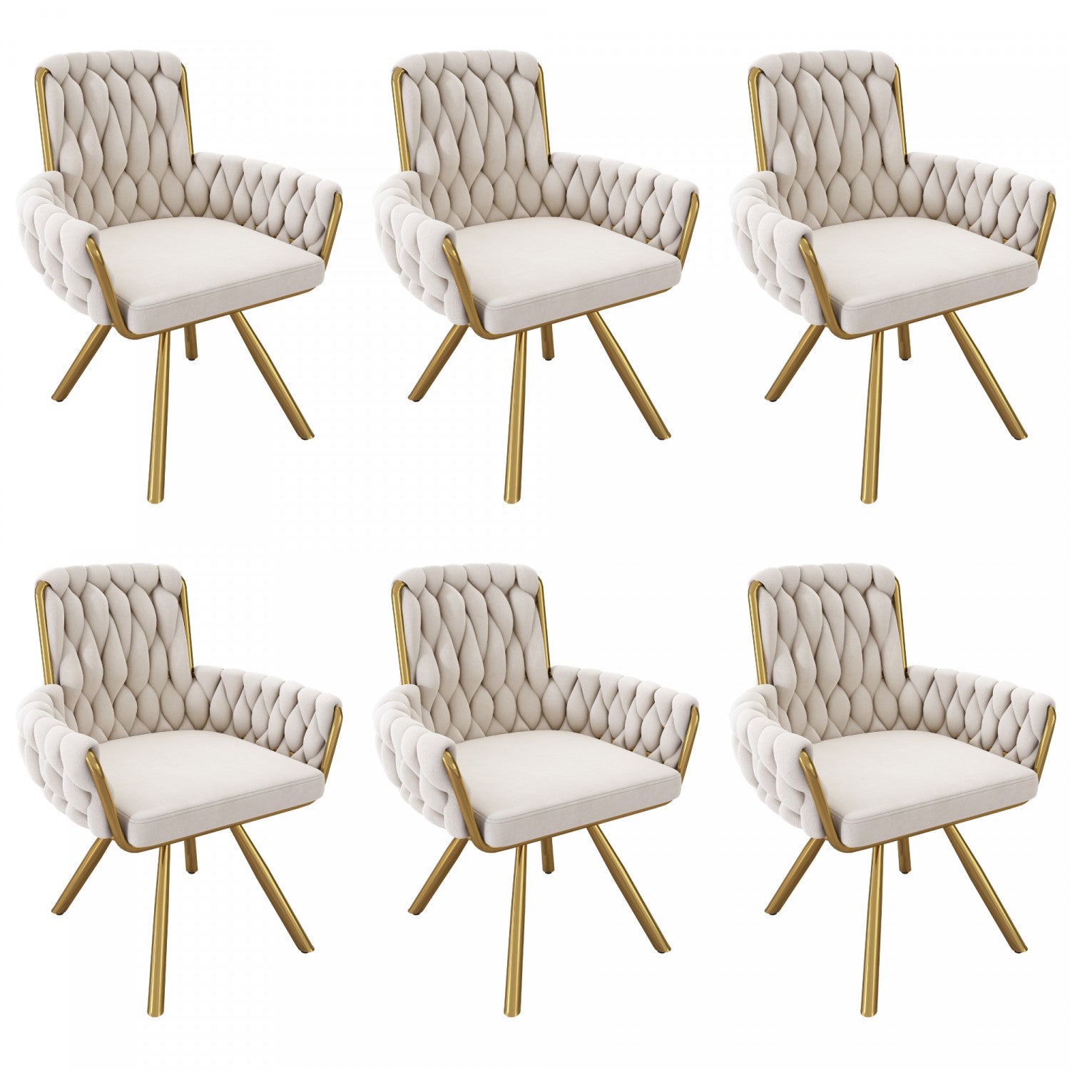 Chaises de salle a manger pivotantes Timothy en velours avec revetement capitonne et pieds en metal dore, lot de 6