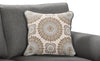 | Coussins décoratifs | Deux, chacun orné de motifs circulaires gris et bleus. |