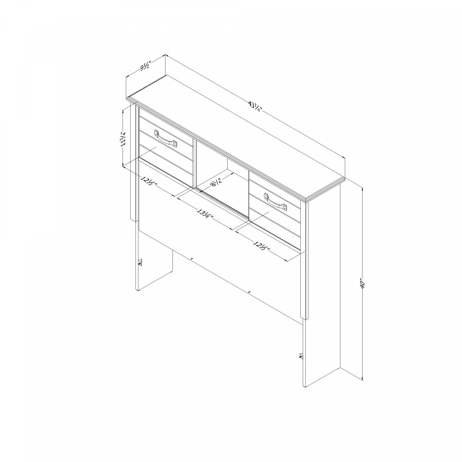 Largeur : 43,25 po (109,9 cm) Hauteur : 40 po (101,6 cm) Profondeur : 9,5 po (24,1 cm)