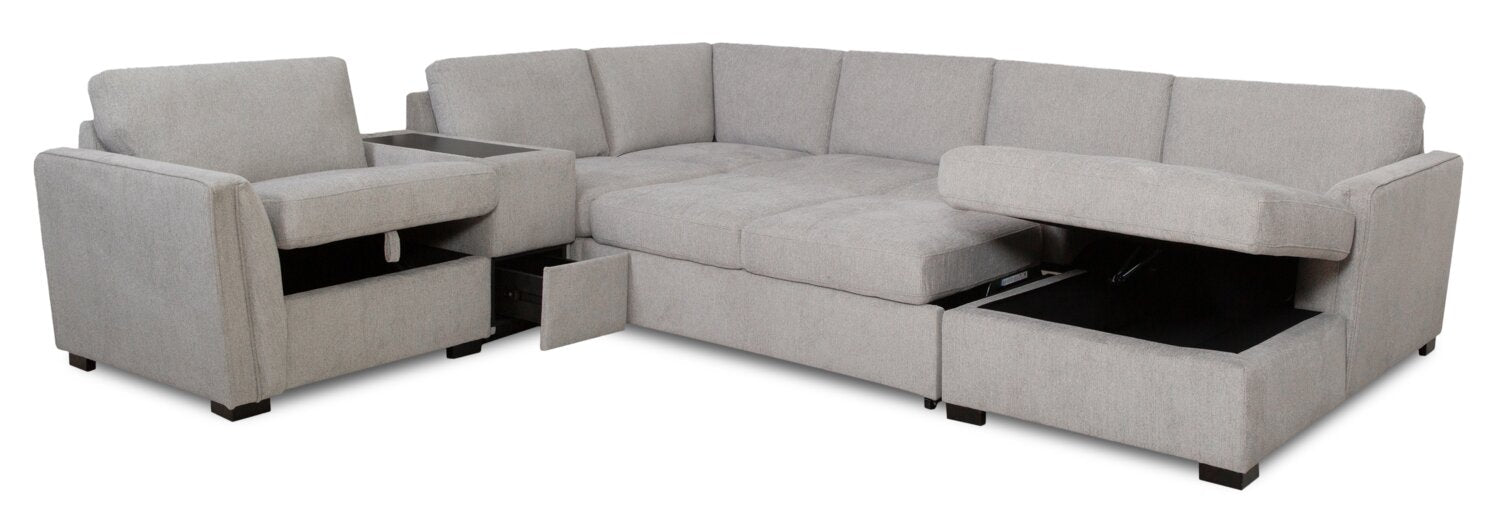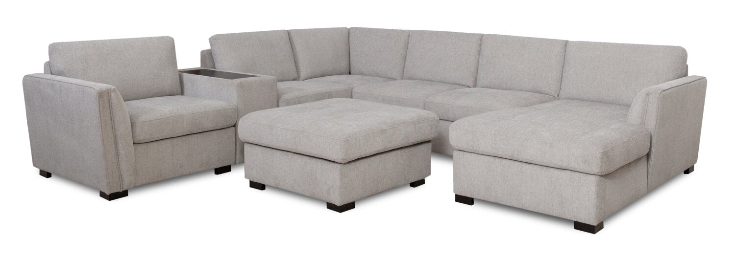 | Options de rangement | Deux fauteuils, un fauteuil long et la console tiroir avec USB. |