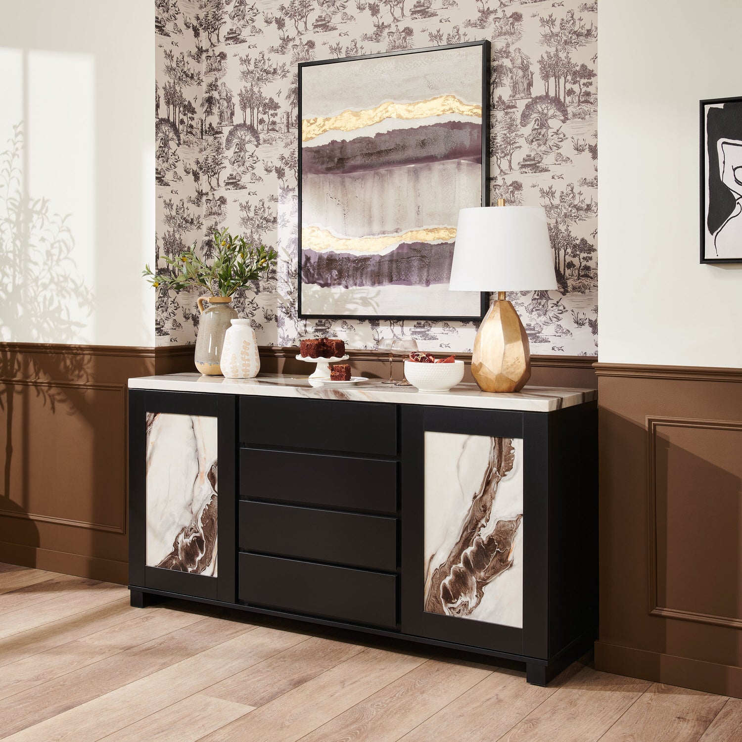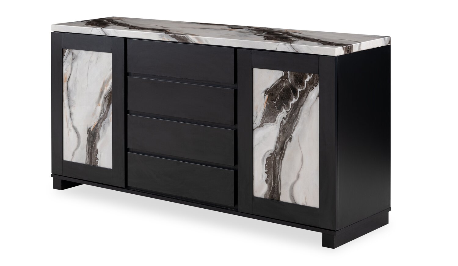 | Options de rangement | Quatre tiroirs de rangement et deux armoires, lesquelles possèdent une tablette chacune. |