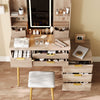 Victoria Ensemble de coiffeuse 7 tiroirs avec miroir LED et pieds en metal, Brun Jaune