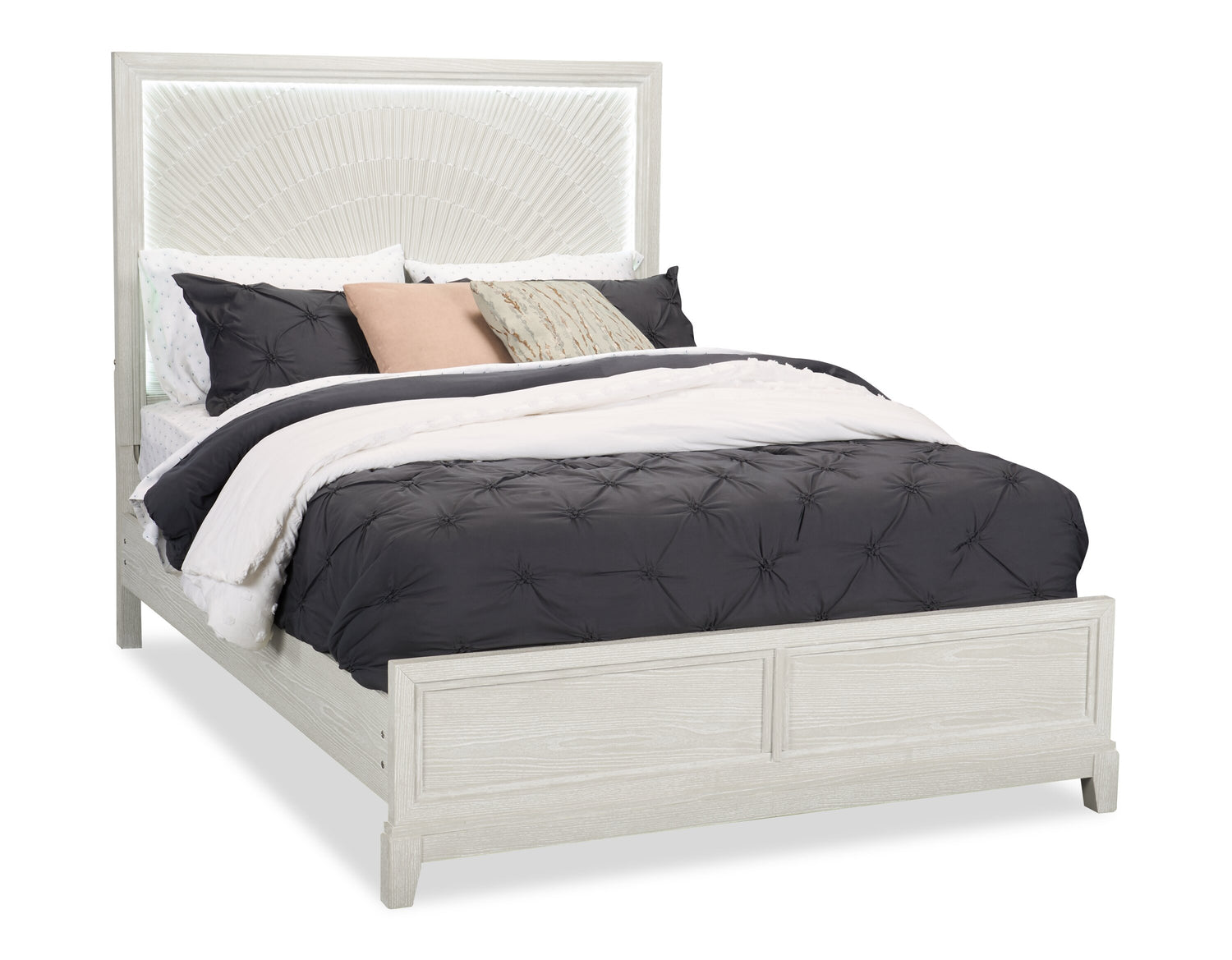 Lit à panneau Ava somptueux avec tête de lit, cadre de lit et éclairage à DEL, blanc - format grand lit