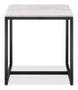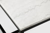 | Détails décoratifs | L’armature noir mat complète le dessus de table clair. Le dessus en marbre blanc est rehaussé par de discrètes nuances de noir. |