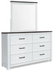 Miroir de commode de chambre à coucher Zoey - deux teintes, blanc et brun